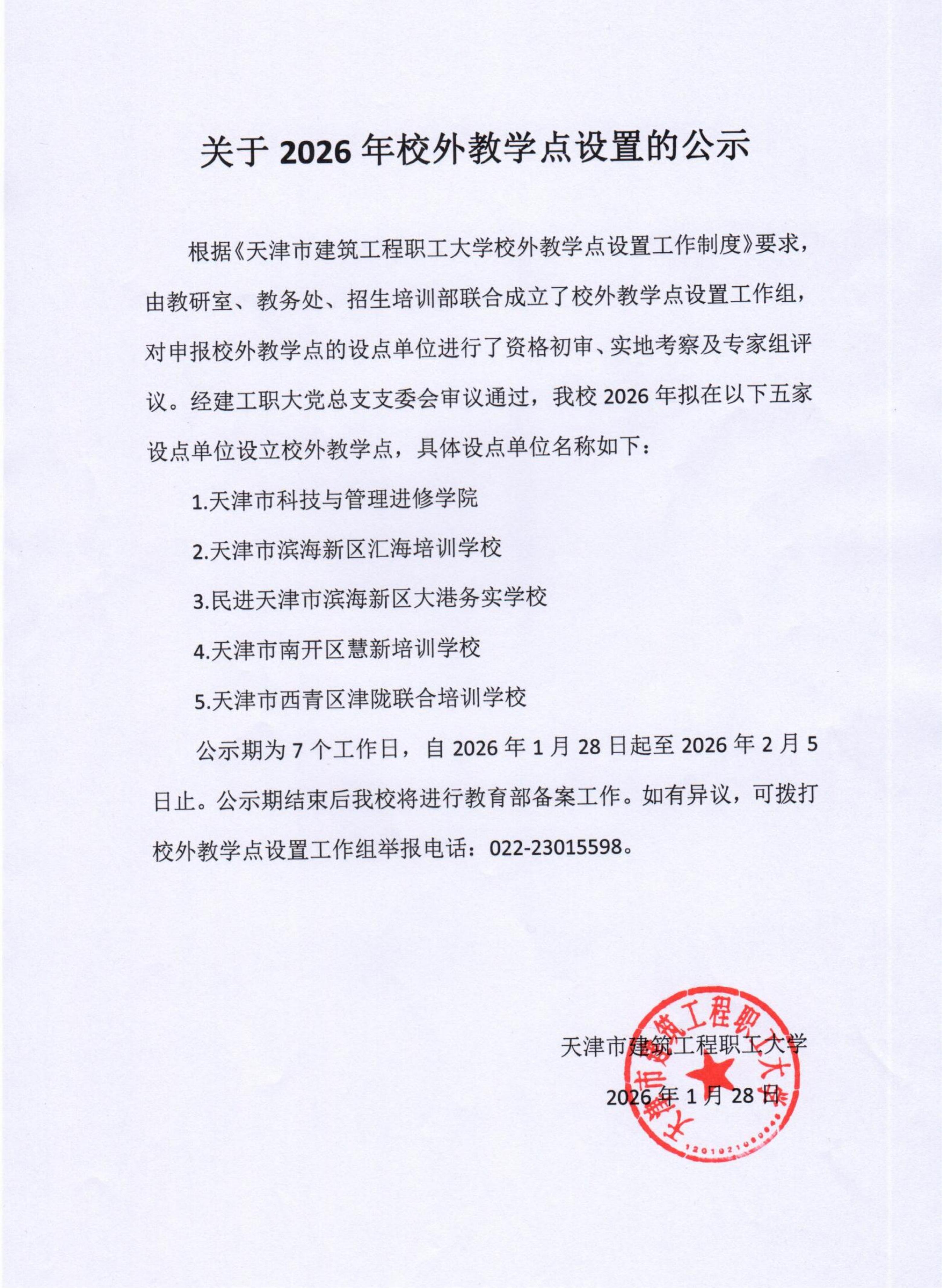 关于2026年校外教学点设置的公示